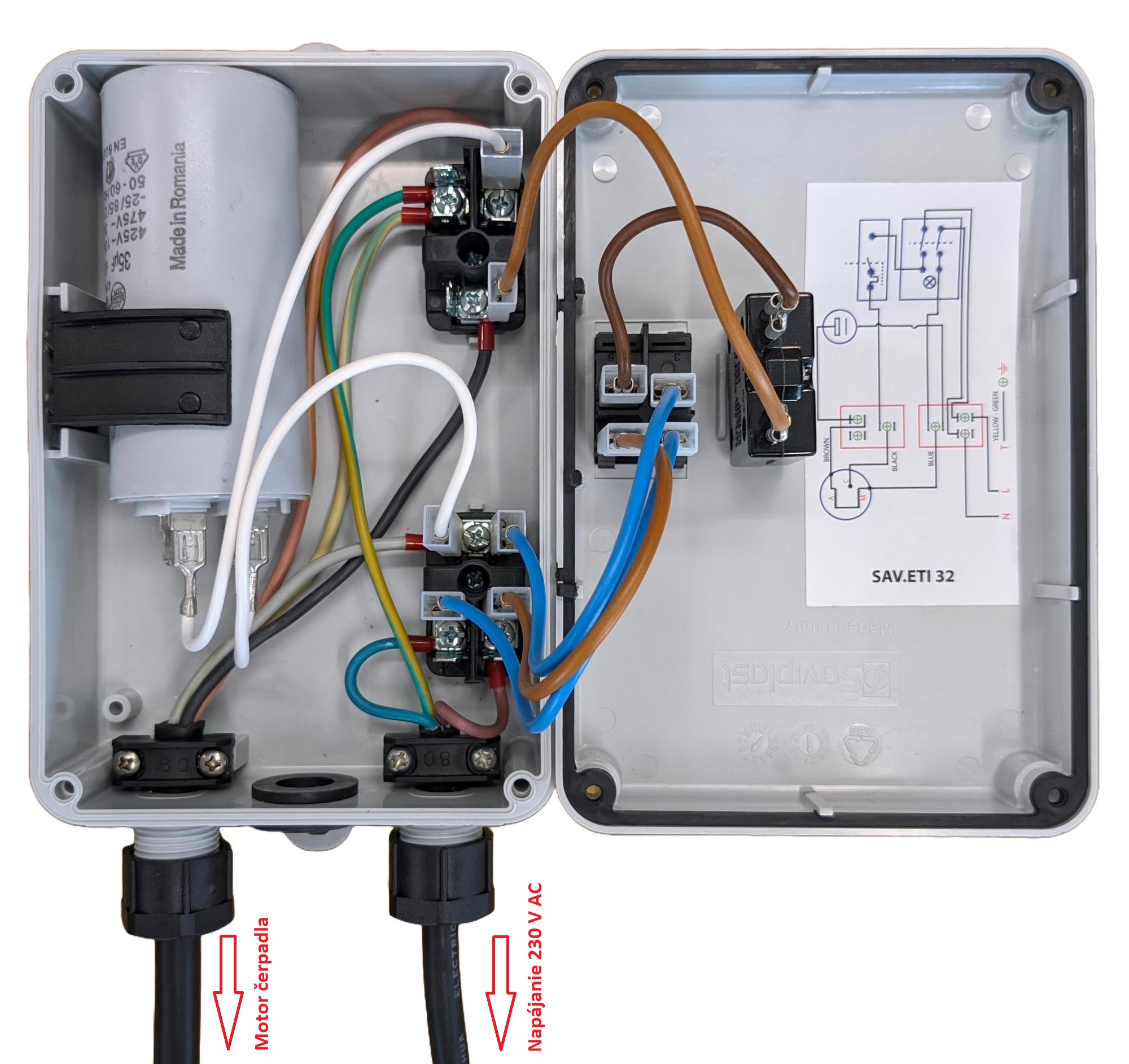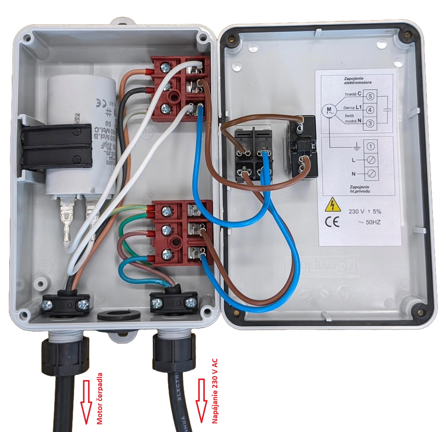 Potrebujete spoľahlivo spustiť a ochrániť jednofázový elektromotor? Skrinka s vypínačom, rozbehovým kondenzátorom a prúdovo-tepelnou poistkou je ideálnym riešením pre rôzne aplikácie.