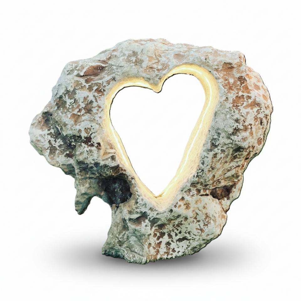 Solitér Srdce je mimoriadne pútavý a emocionálny dekoračný prvok. Jeho prirodzená štruktúra kameňa je premenená do symbolického tvaru srdca a doplnená o integrované LED svietenie. Toto spojenie prírody a moderného osvetlenia robí zo solitéra unikátny a dominantný prvok vo večerných hodinách. Kameň je podpílený pre rýchle a stabilné osadenie do každého terénu.