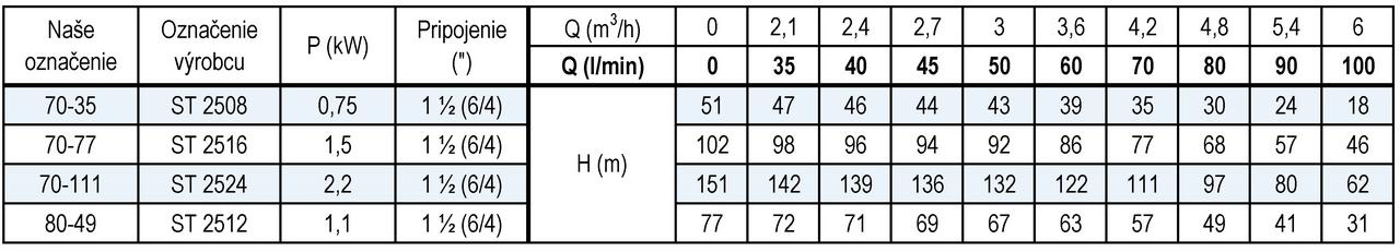 - Maximálny výtlak: 51 m